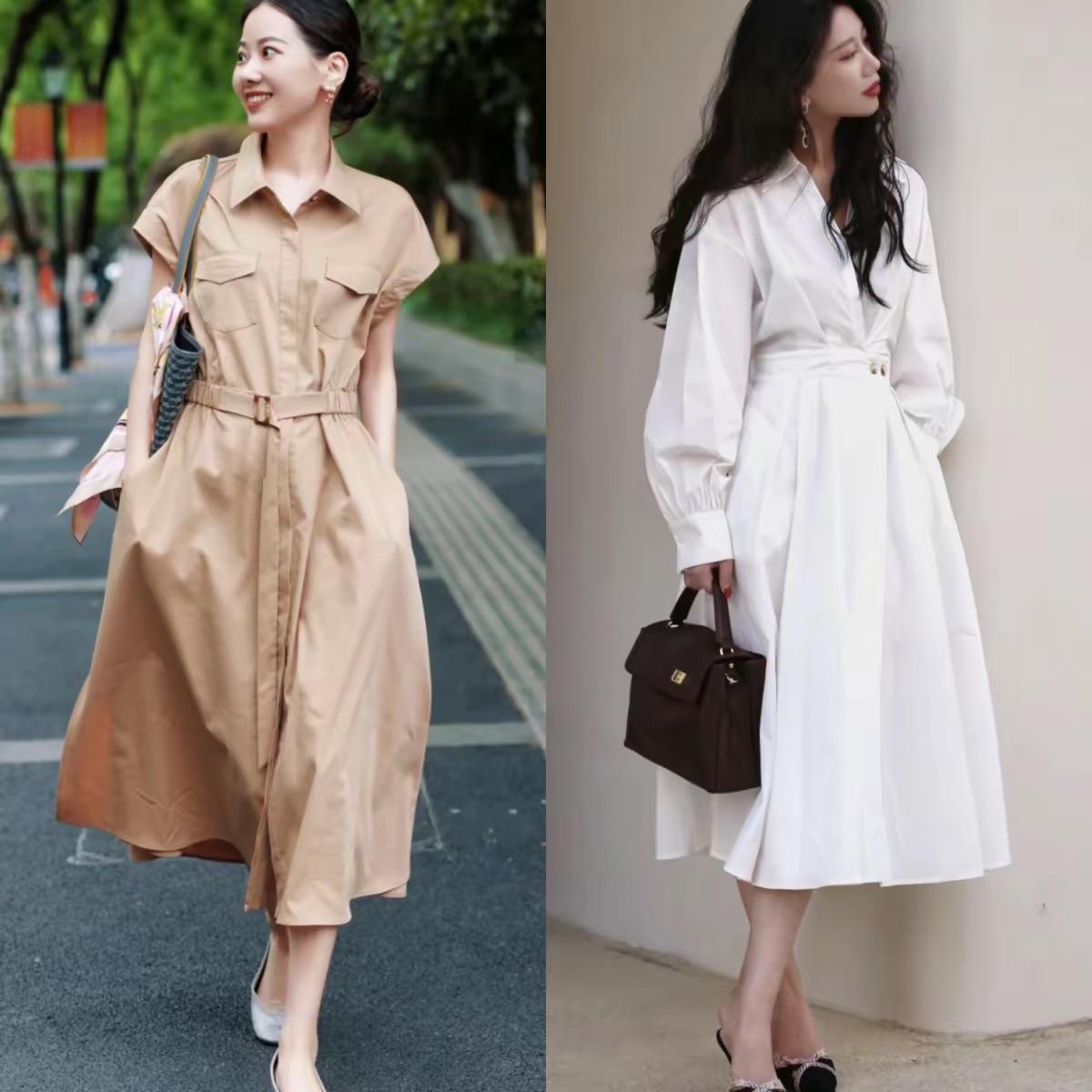 不管是卡其色的襯衫連衣裙,還是經典的白色襯衫連衣裙,都應該選擇相對挺闊的面料。面料上的硬挺,塑造出更高級的氣場,有一種氣場全開的驚豔。