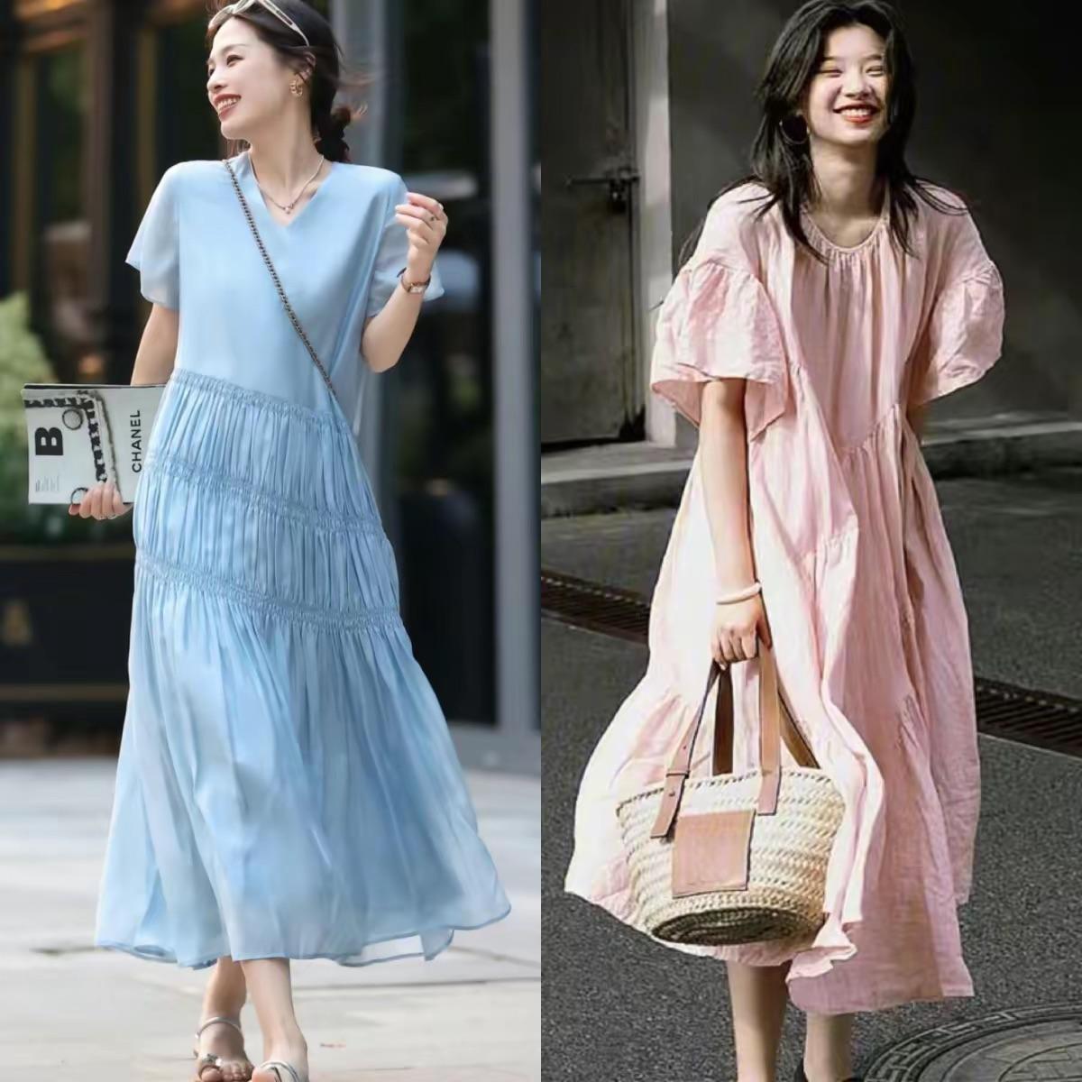 2、棉麻質感的連衣裙,文藝大方更透氣