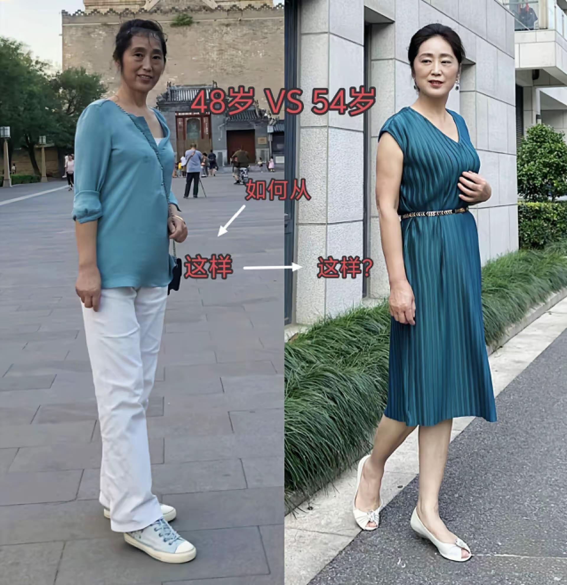 到了54歲的時候,儼然成爲穿搭博主的模樣。身材挺拔了、皮膚白皙了、氣質也更出衆了,有一點圓潤的體型更有女人味了。