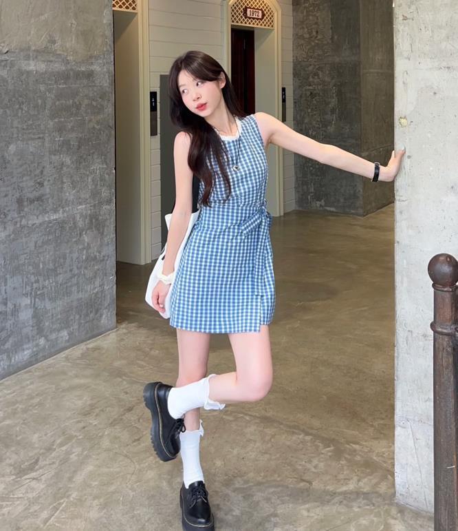 喜歡一切的藍色,對於這種色調就是沒有抵抗力,這款藍色小裙子穿起來也太好看了,可以把整個人的身材比例襯托得很好,腰間繫上蝴蝶結後就非常顯腰身了,顯瘦更藏肉。
