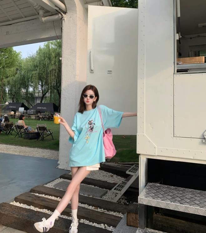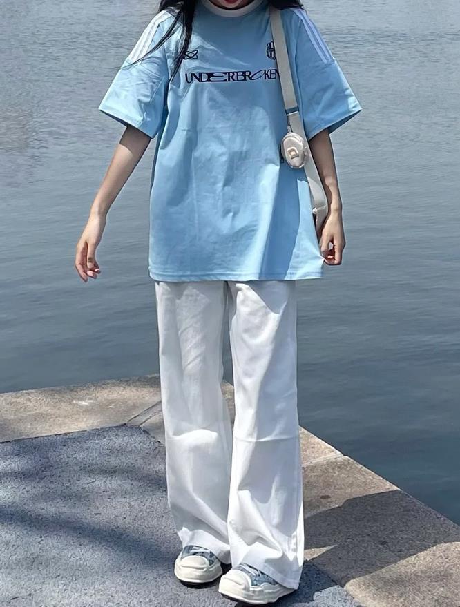 在炎炎的夏日裏,選擇一件藍色t恤來穿,實在是太合適了,入手版型寬鬆,設計簡單一些的就很好搭配。藍色,作爲冷色調,在視覺上會給人呈現出一種清爽、寧靜的效果,可以助你驅散夏日的炙熱感,帶來一絲清涼和舒適。