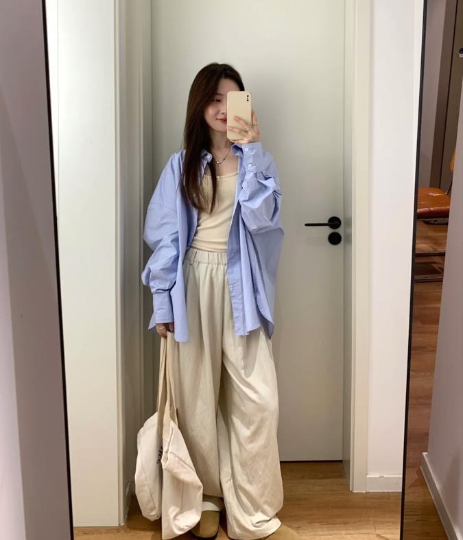另外,藍色襯衫也是具備着極佳的搭配效果,無論是與什麼樣的下裝相配,都能給人眼前一亮的效果。你可以增加一些配飾點綴,絲巾、項鍊或者是帽子等等,都能更好提升整體造型的時髦度。
