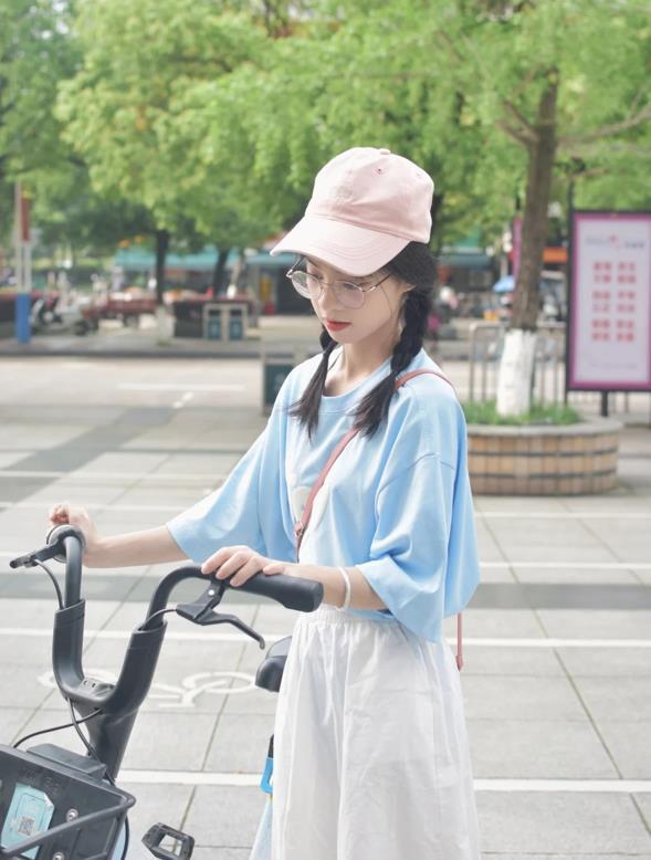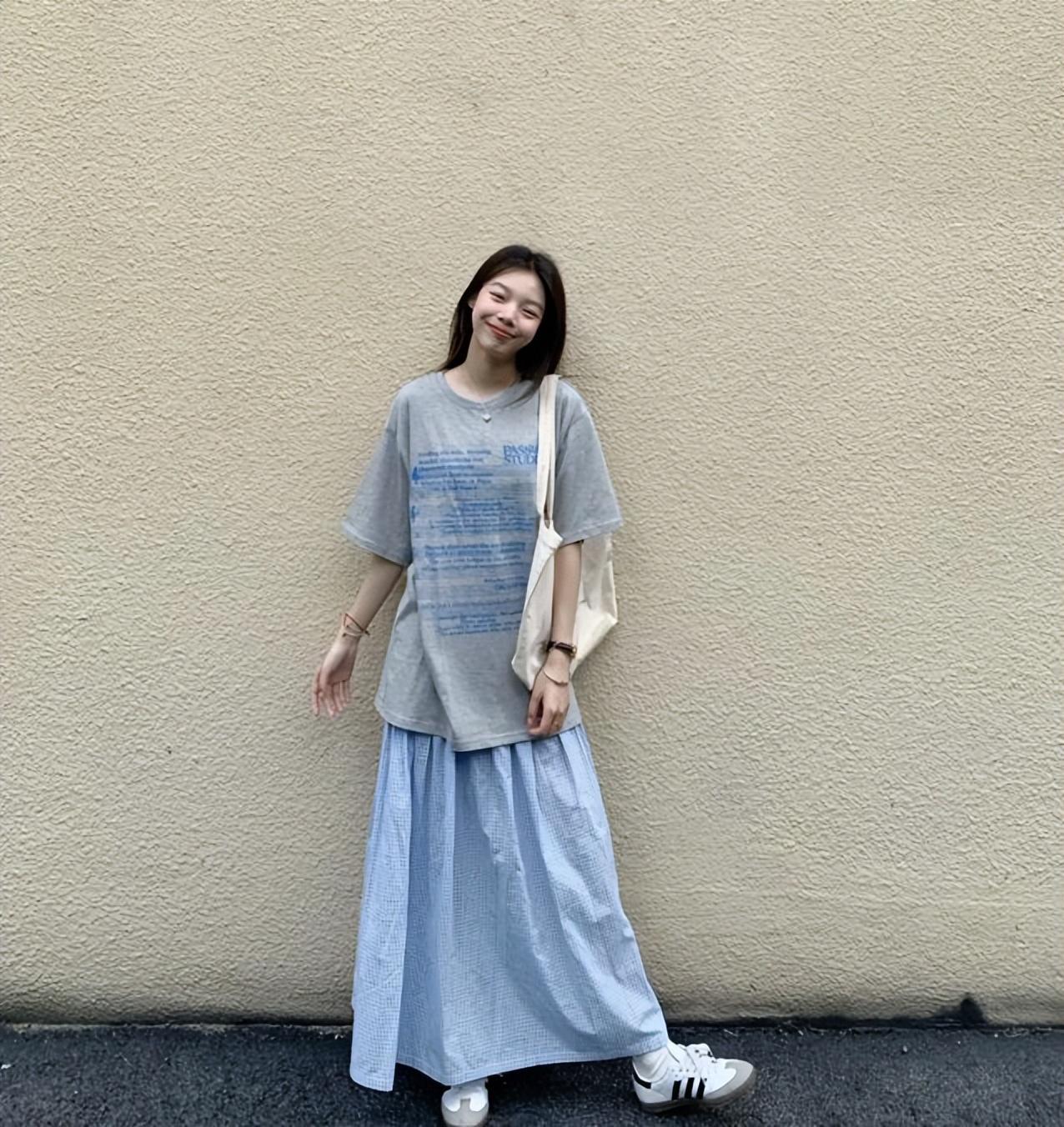 在夏天,穿藍色半身裙,上衣可以選擇一件簡單的白色t恤,或者是襯衫來進行搭配,這樣就能輕鬆打造出時尚又不失大方的造型。
