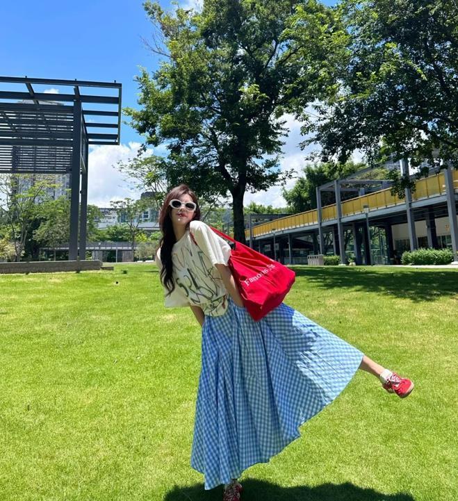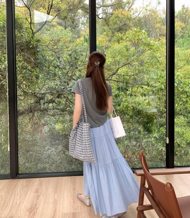 如果你不喜歡穿連衣裙,那麼在夏日裏就試試半身裙吧,特別是藍色半身裙,穿起來照樣很顯優雅和時尚。它以獨特的魅力,爲炎炎夏日帶來一抹清涼,長度建議入手長一點的,更能凸顯出女性的柔美和溫婉。