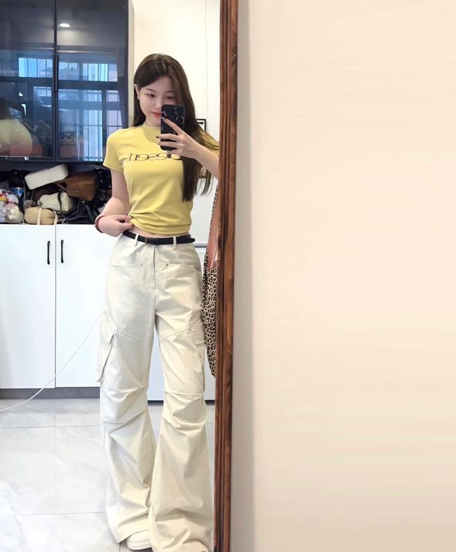 至於小個子女生,在利用起上緊下松的搭配時,就要選擇高腰的褲子或裙子來配,這樣能夠很好拉長下身的比例,讓人在視覺上看起來更加高挑。或者是直接選擇短上衣,亦或者將上衣塞進褲子裏面,都能很好起到縱向拉伸的效果。