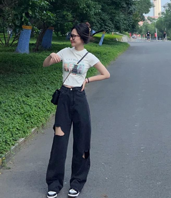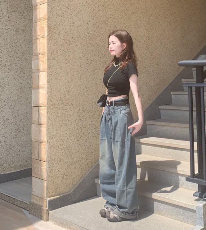 上緊下松的穿搭,可真的是非常顯瘦啊,這種搭配方式不僅能讓你看起來時尚度滿滿,還巧妙將你的身材比例進行了修飾,讓人在視覺上呈現出顯瘦的效果,也非常苗條。