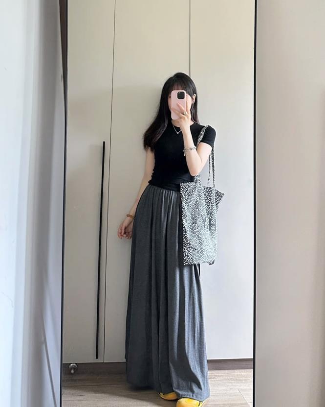 至於下身的單品,版型是要寬鬆的,不管你是選擇長褲,還是長裙,版型都要寬鬆一些,這樣才能夠更好遮掩起身上的不足。比如胯寬、大腿粗的缺點,這些單品都能讓你看起來更顯瘦,也在視覺上拉長腿部線條。