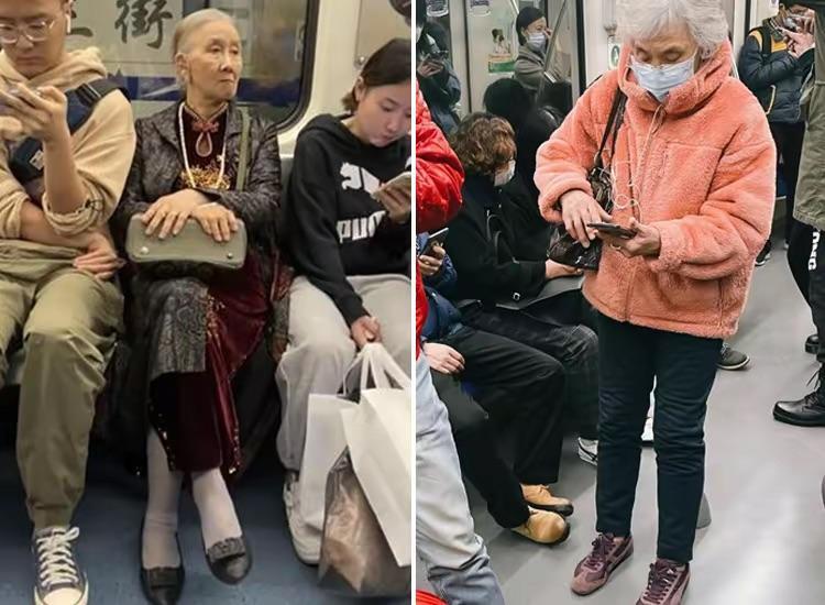 上海地鐵奶奶,會保持更加優雅的坐姿。即便是坐在地鐵上,也會注重自己身體形態。端莊的坐姿、優雅的體態,一下子就削弱了年齡感。