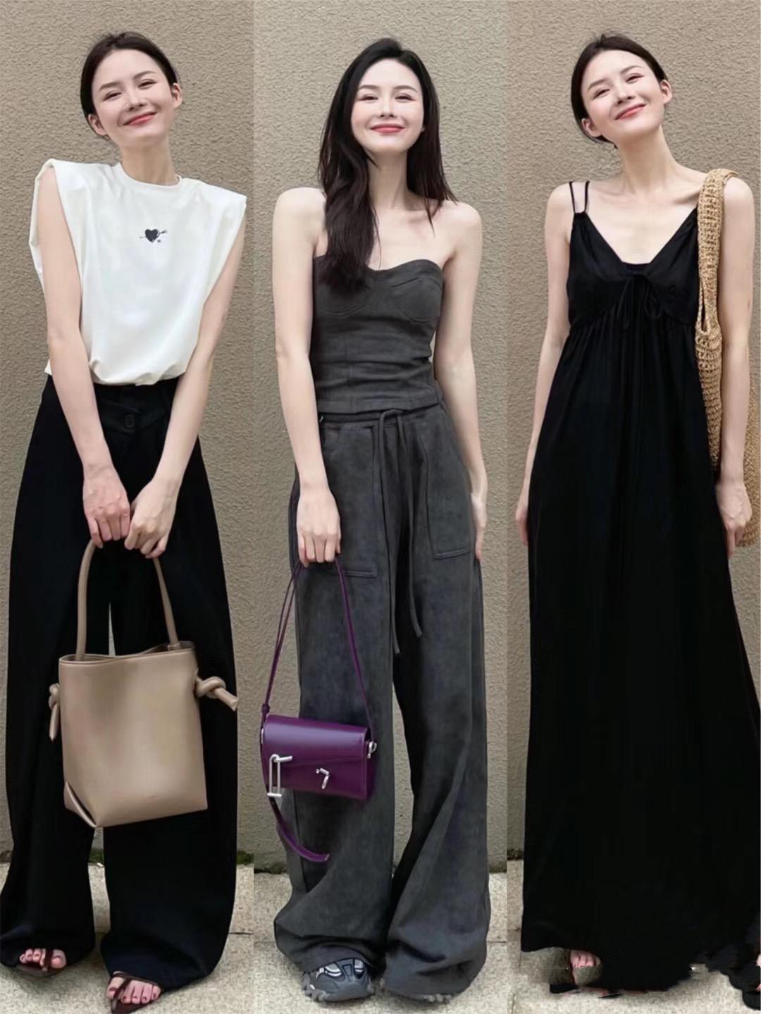 那麼抹胸吊帶、砍袖上衣、或者修身的吊帶連衣裙,都可以成爲日常中時髦且醒目的穿搭。尤其是黑色吊帶連衣裙,修身的款式、簡約的線條、流暢的剪裁,塑造出清爽大氣之美。