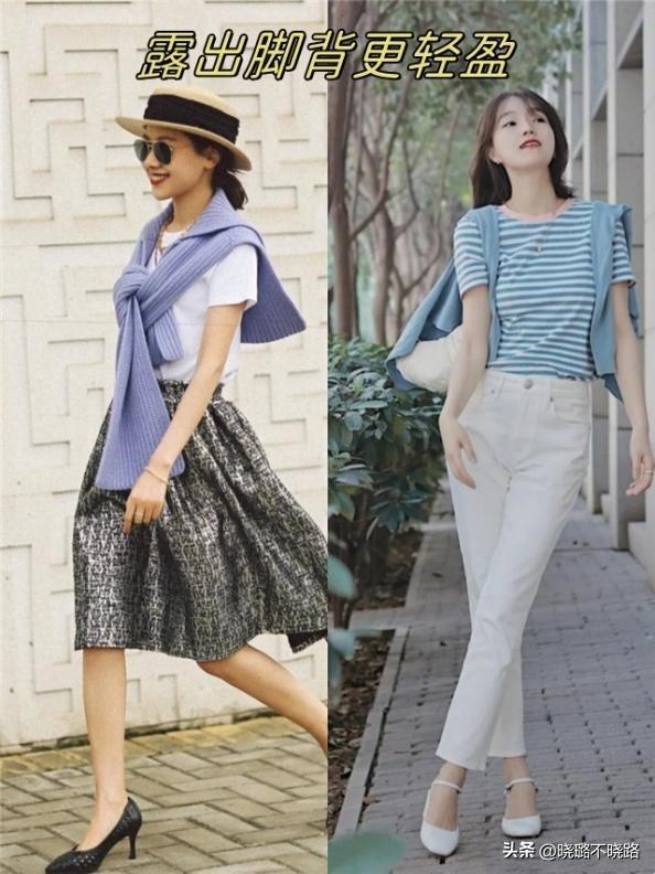 如果夏季還穿小白鞋這種全面包裹住腳的鞋子,很容易讓人感到沉悶,不夠輕盈。選擇具有一定露膚感的鞋子,不僅可以修飾小腿到腳部的延伸線條,同時也可以增加女性專屬的優雅感。這樣的設計對於女性而言不但可以帶來更好的透氣性,同時也能體現肉眼可見的溫柔氣息。