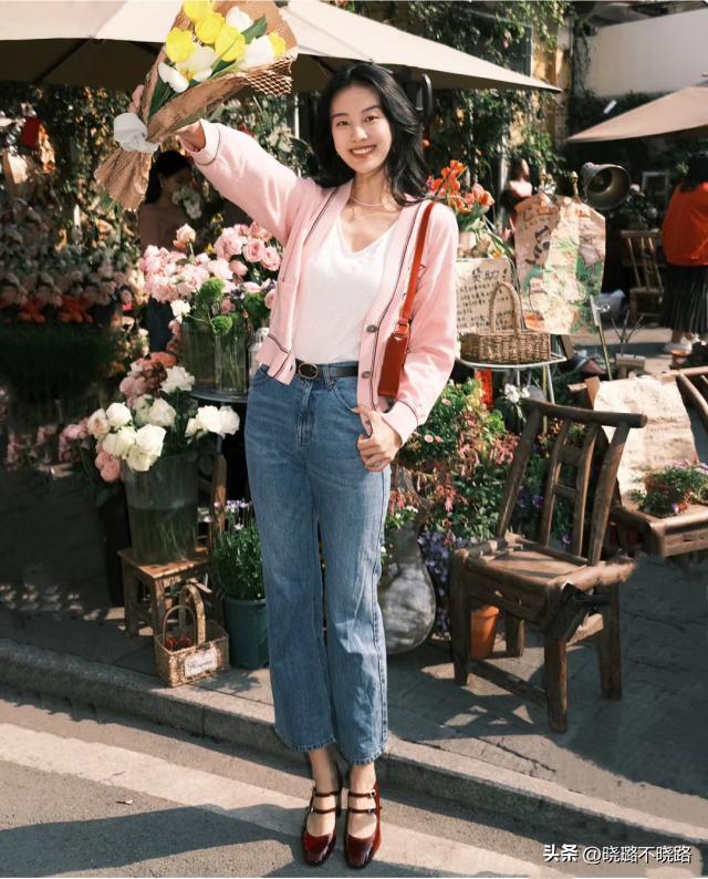 我們對於自身造型的講究,可以在某種程度上展現我們內心深處的豐富情感和對生活的熱愛。選擇彩色系的單品,不僅可以讓造型變得吸睛奪目。同時也可以讓心情變得愉悅,視覺觀感更加快樂。粉色的針織衫搭配白色T恤,清新的配色和牛仔褲之間形成了很好的視覺過渡性。