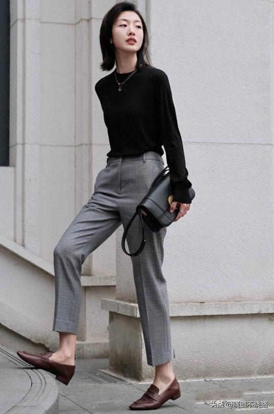 如果我們想讓自己的身材狀態呈現出一種纖細同時又舒適的視覺感受,我們可以重點打造帶有流暢和利落感的造型效果。建議大家多多選擇直筒或者煙管系列的下裝,微微寬鬆既可,略帶一些修直的感覺。這樣和樂福鞋相互搭配,所呈現的效果非常的流暢,給人顯高顯瘦的視覺觀感。