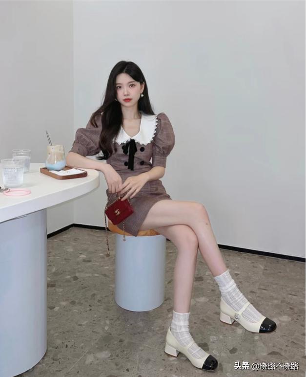 選擇一條連衣裙也可以減少很多搭配上的煩惱,荷葉領結合泡泡袖的設計,可以讓形象更加甜美俏皮。搭配一雙小香風式樣的拼色瑪麗珍鞋,經典色系的組合會讓鞋子本身更加高級。再組合白色的蕾絲短襪,一方面修飾了小腿線條,另一方面也能爲整體造型增添一份休閒感和輕鬆度。