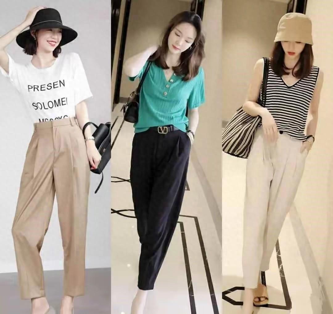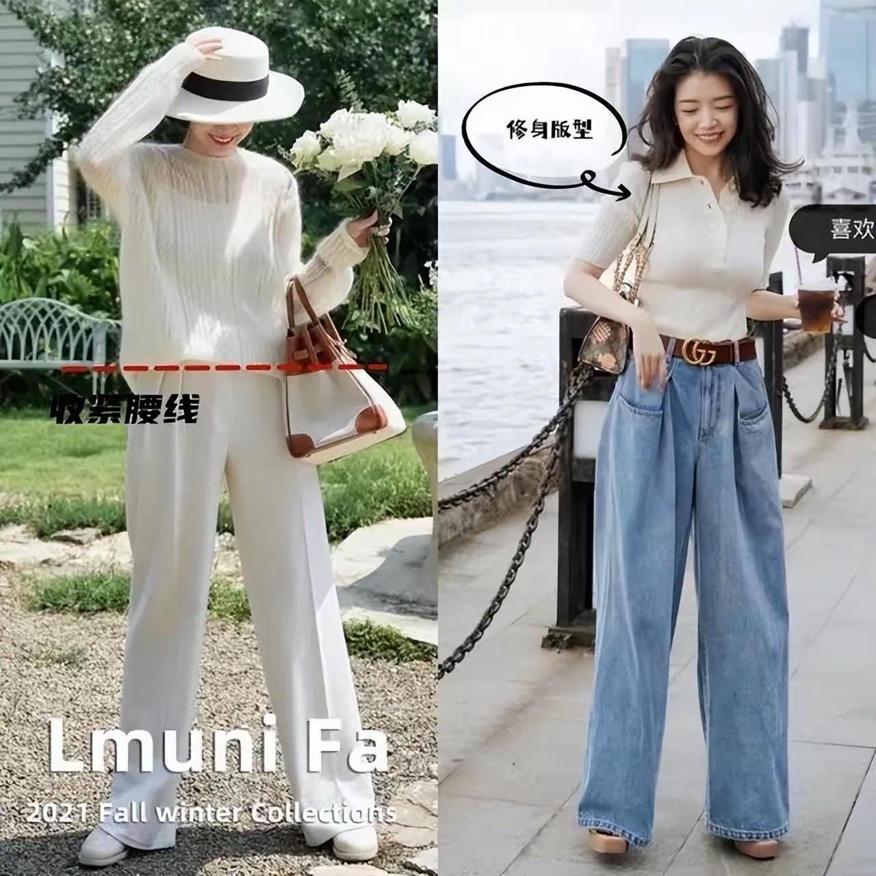 夏天裏可以選擇露臍T恤、或者露臍背心,搭配面料相對輕薄的直筒褲。直筒褲版型筆挺,帶有一定的鬆弛感,可以更好的修飾腿型。