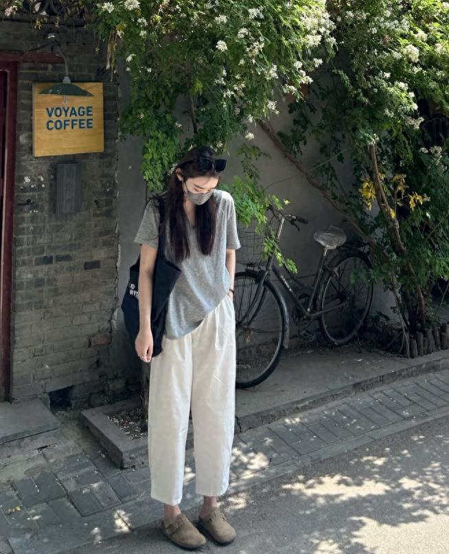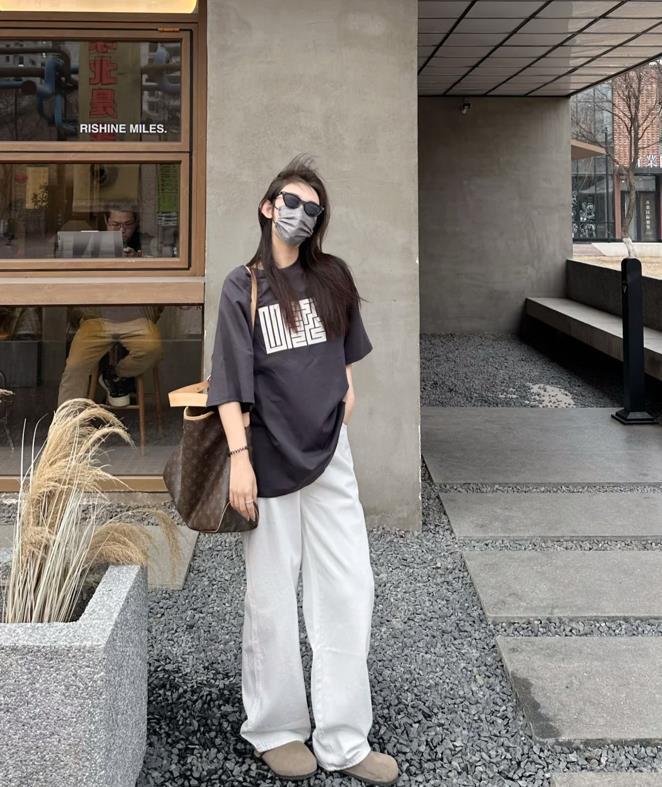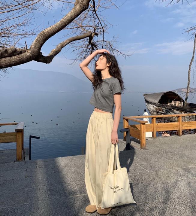 有沒有姐妹跟我一樣,都非常喜歡這種乾乾淨淨簡簡單單的穿搭呢?奶白色的闊腿褲穿上真的太好看了,關鍵是很藏肉顯瘦。褲子的面料軟軟的,非常舒服,選擇同色的短袖t恤來配,整體的穿搭看起來就更和諧了。