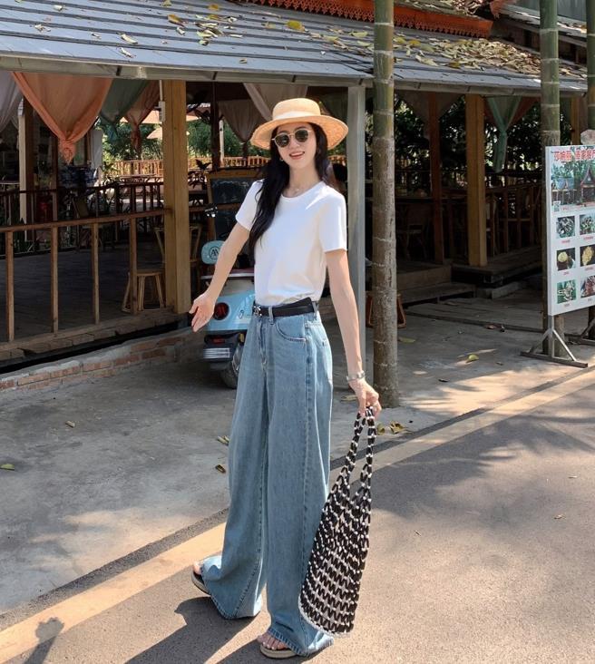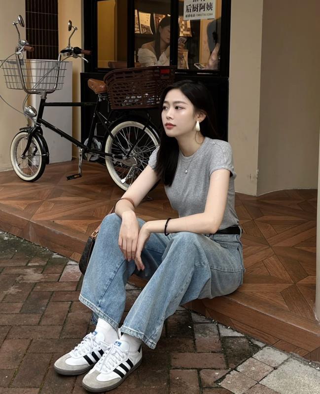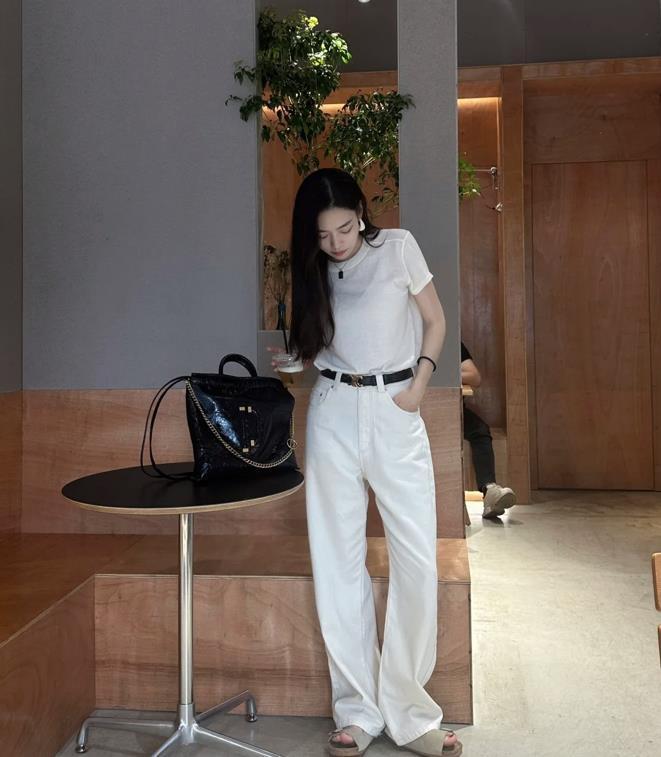 對於夏季的穿搭,我就是比較追求簡單一些,像白t、牛仔褲這種單品,雖然看起來很簡單,卻十分百搭和耐看。穿搭上可以遵循上緊下松的組合,特別是上身比例瘦,骨架小的身材,穿上緊身一點的上衣也沒有問題。