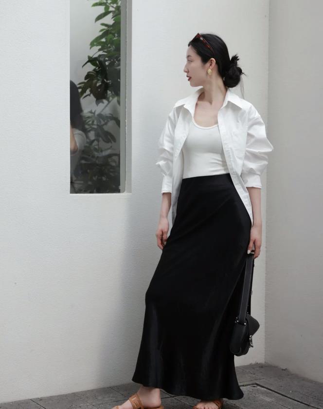 白襯衫和黑半身裙的組合,不管是從配色上,還是單品組合上都是永不過時的,在職場上班的姐妹們,如果不知道怎麼穿就可以借鑑起來。簡簡單單就可以顯得很氣質優雅。