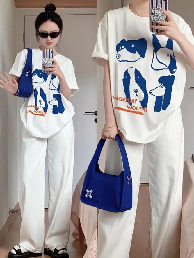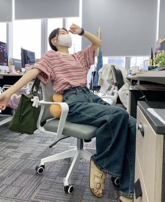 夏天的穿搭就是要簡單一些,像t恤、牛仔褲這種單品就應該多利用起來,覺得純色系t恤太簡單的話,可以選擇條紋款式、字母印花款式的來搭配,牛仔褲的版型,根據自己身材情況選擇即可,推薦直筒、寬鬆的闊腿褲款式。