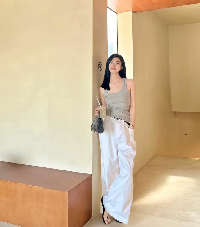 穿衣打扮就應該簡單一些,這一套很適合夏季,背心+白色闊腿褲,整體的配色看起來就很清爽涼快,特別是下身胖的姐妹,就可以這樣穿,顯瘦又藏肉。