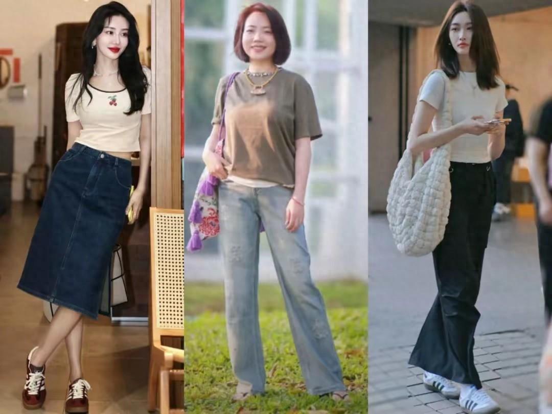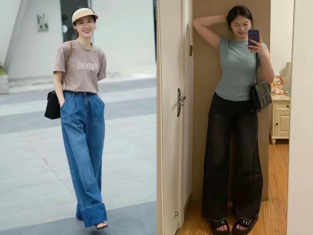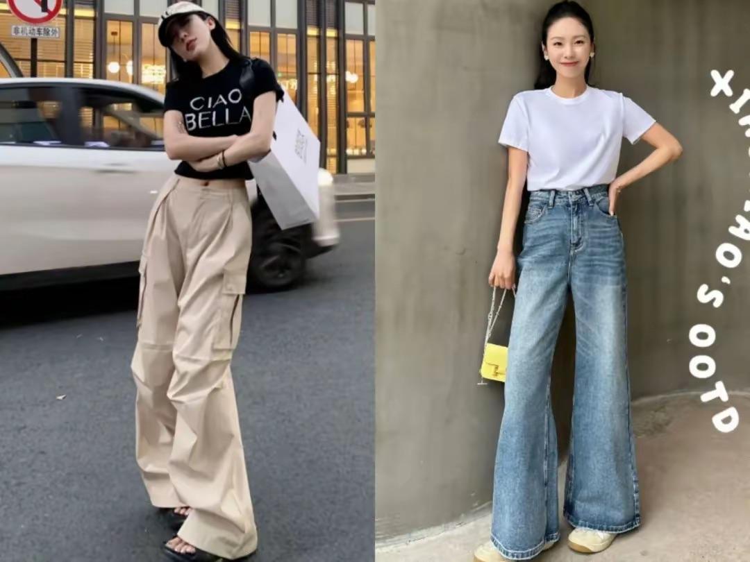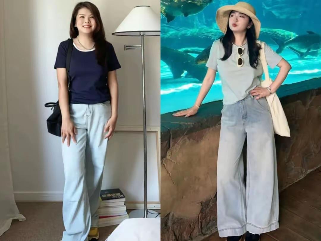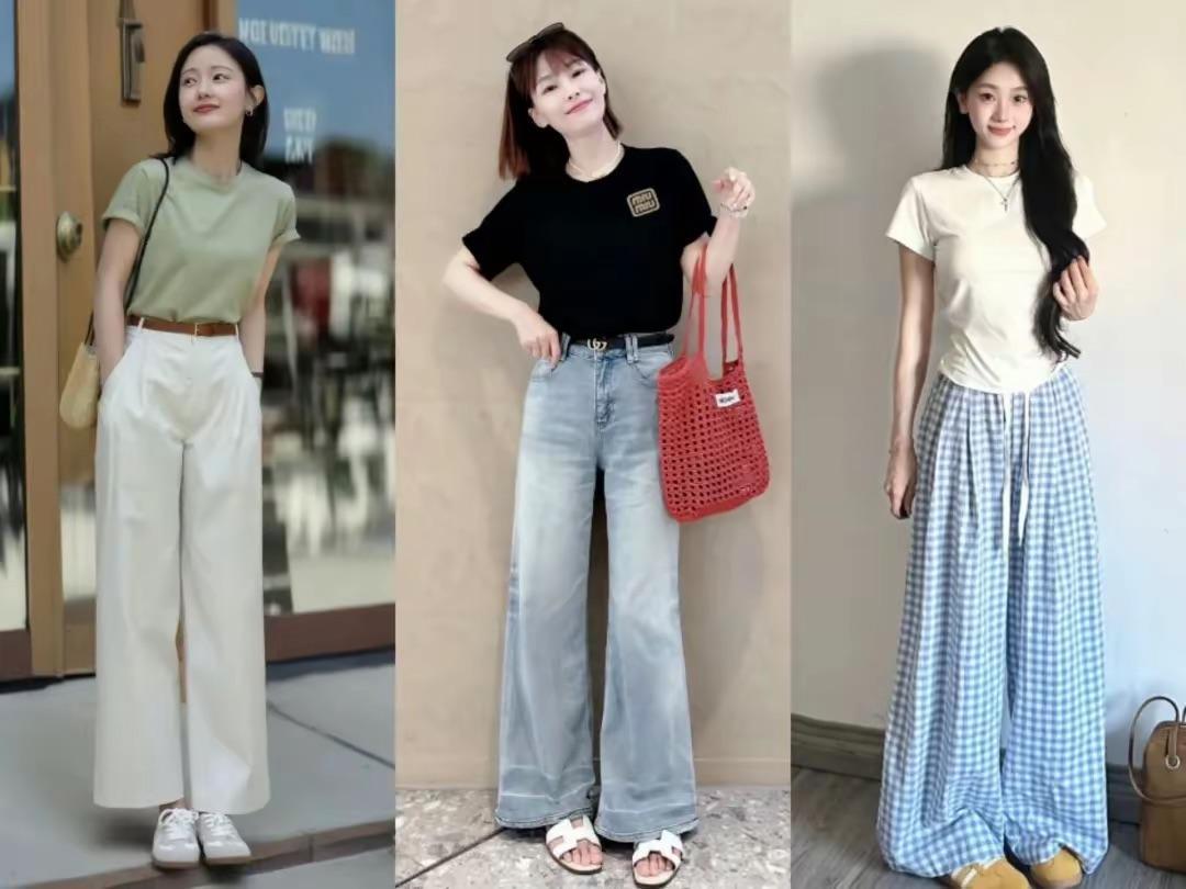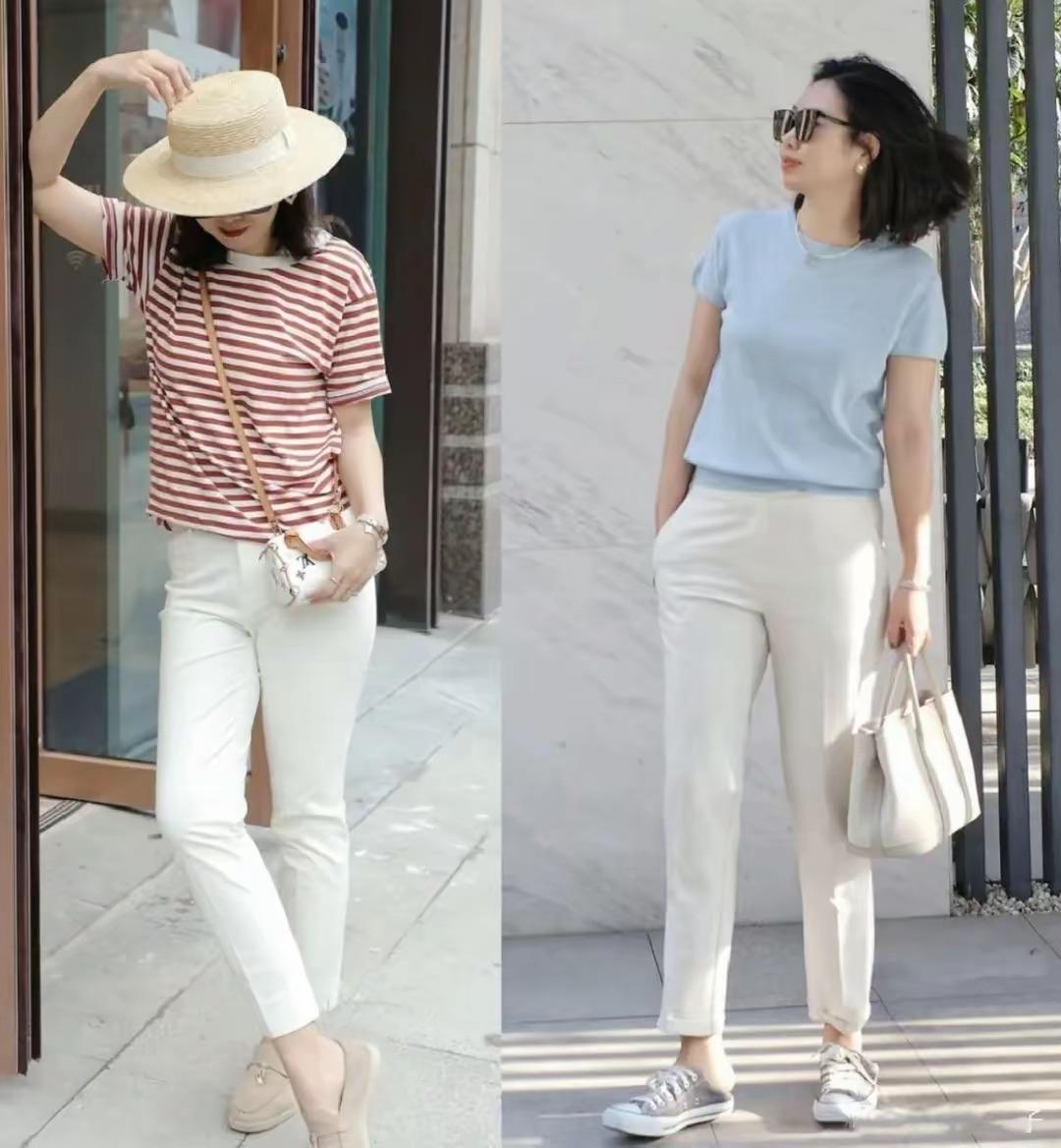 夏天穿T恤,配“小腳褲”還是“闊腿褲”?看這些對比就明白!