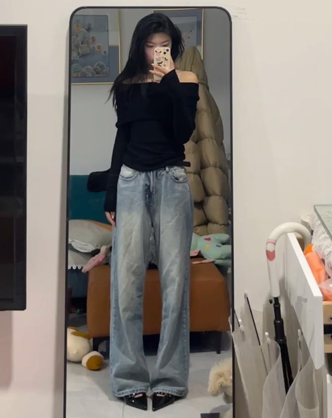 黑色闊腿褲+白色的上衣,經典的黑白配那可是最百搭不挑人的了,也很時髦好看,而牛仔藍闊腿褲,則更顯經典,與淺色、亮色的上衣組合在一起,就能打造出清新活力的風格。