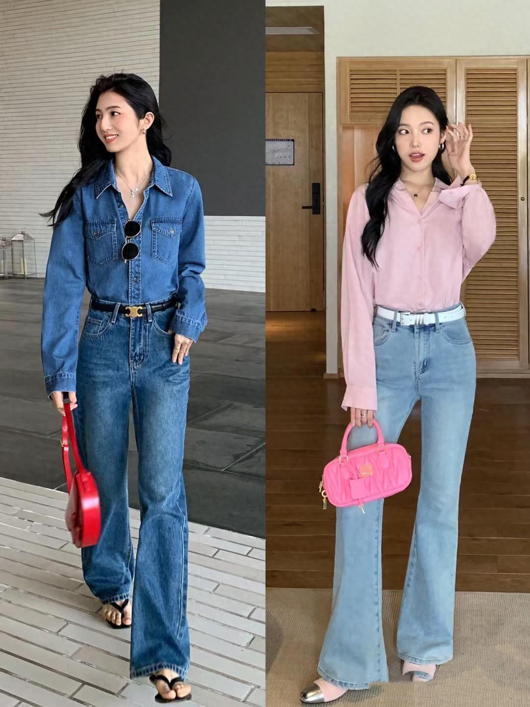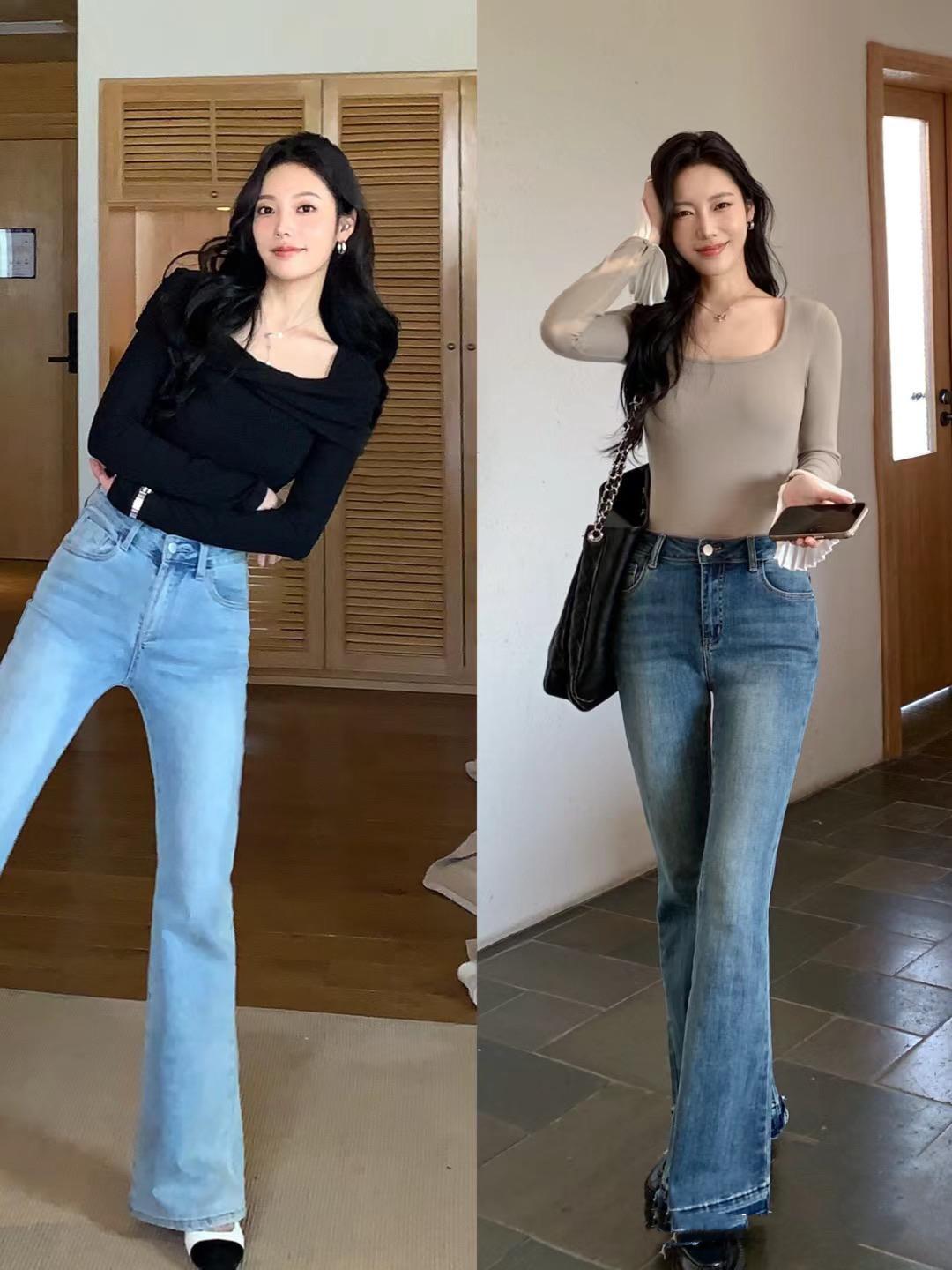 不貼腿女神褲,最大的優勢就是可以更好的修飾雙腿線條。修身一點的高腰微喇褲,上緊下寬的設計、對於雙腿的包容性也更強。