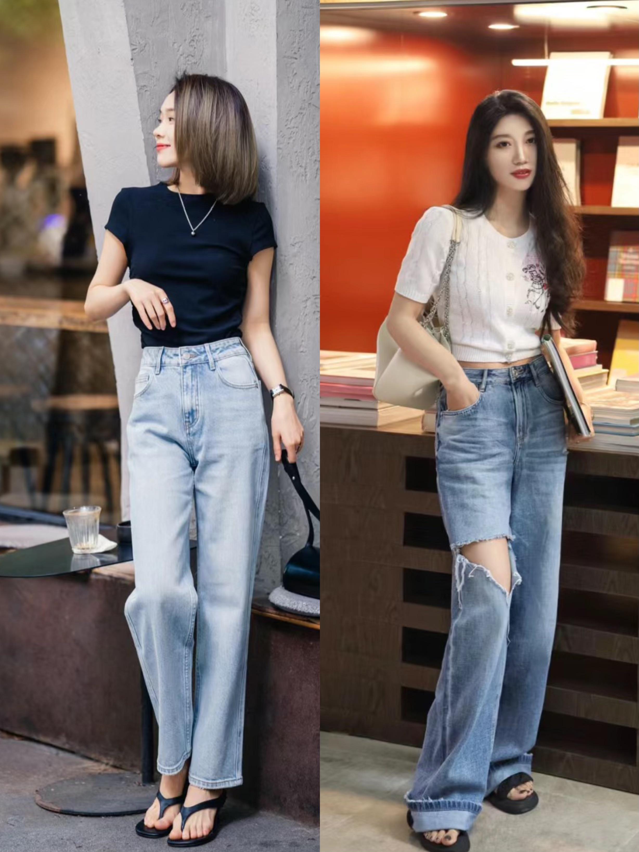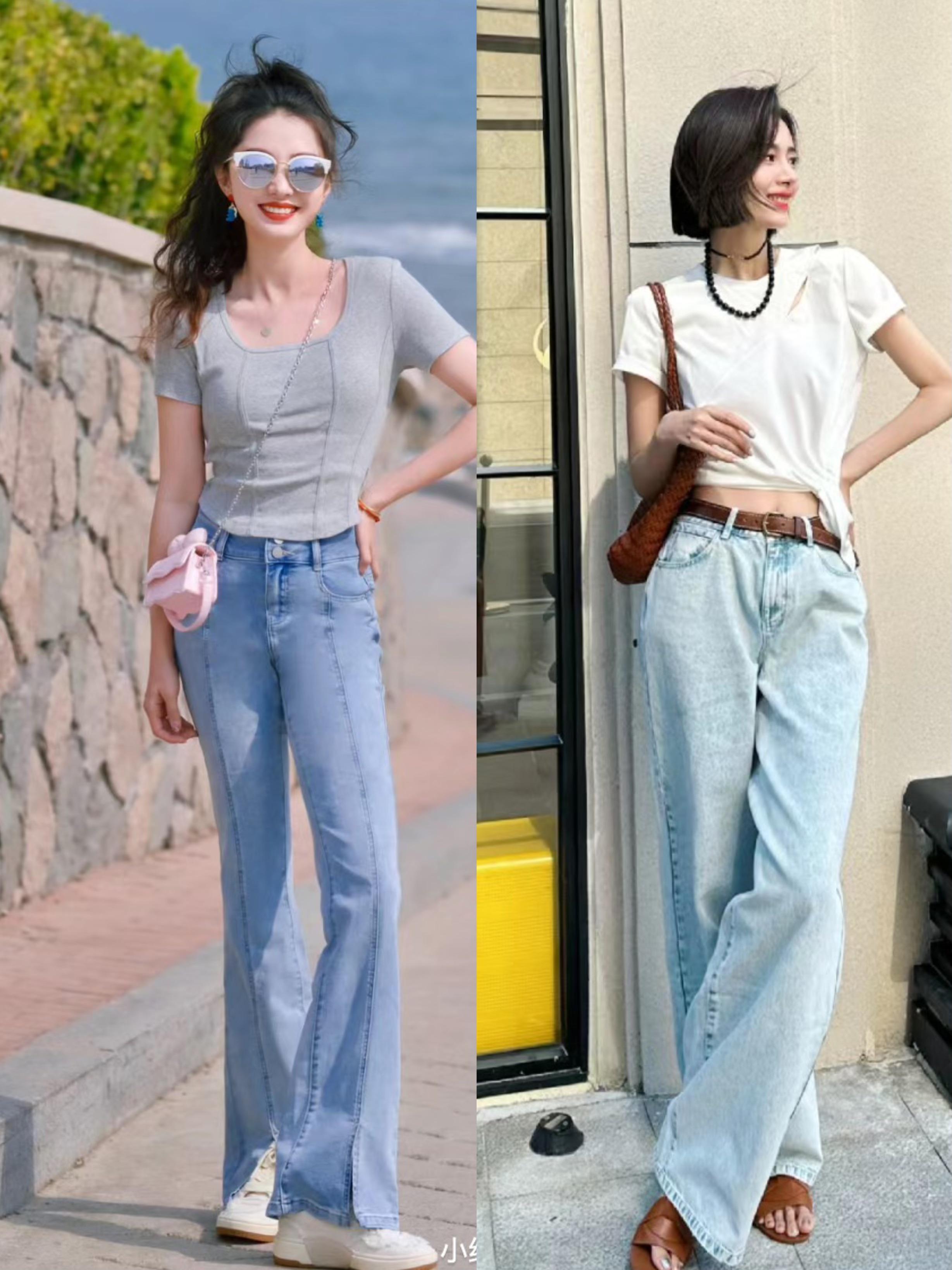 七分褲/九分褲的剪裁,剛好可以露出腳踝或者小腿的位置。七分牛仔褲適合小腿線條比較纖細的人羣,而九分牛仔褲則更加適合腳踝纖細的人羣。