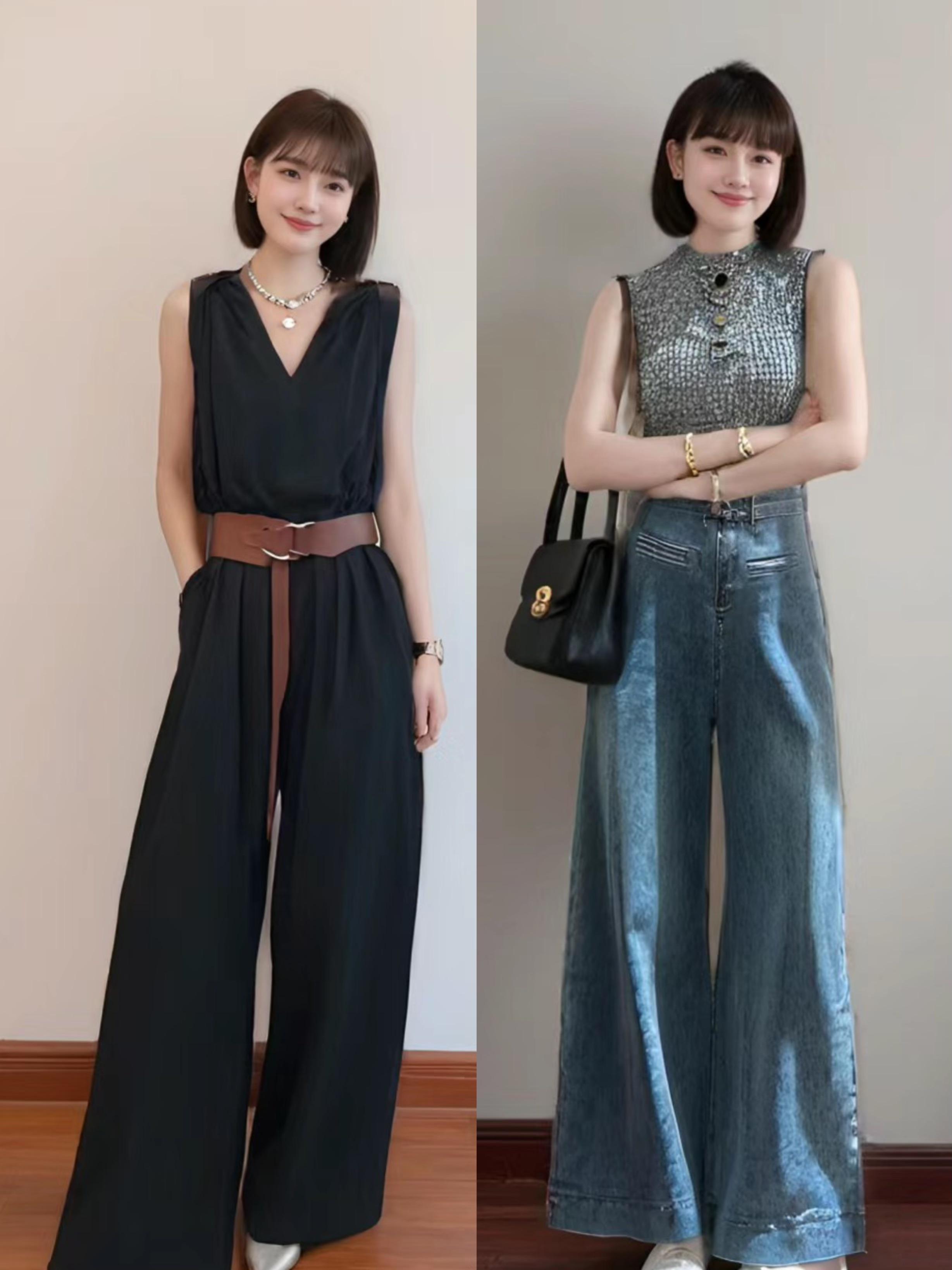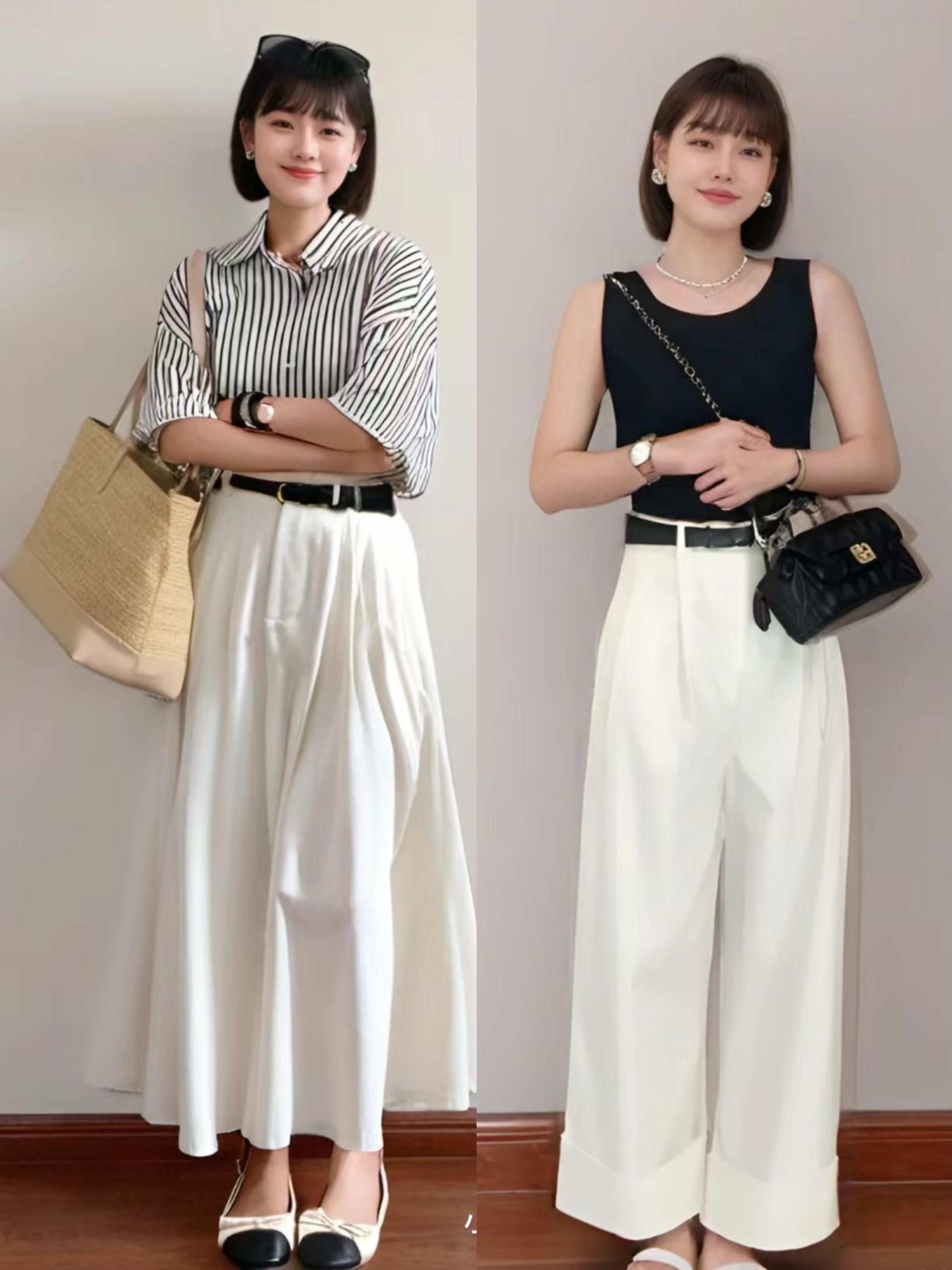 想要一種高級美,可以嘗試用小背心或者條紋襯衫來搭配闊腿褲或者半身裙。