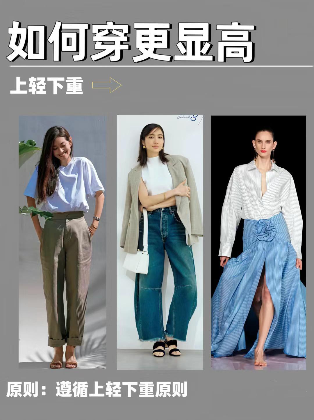 遵循上輕下重的原則,也是更輕盈顯高的方式。