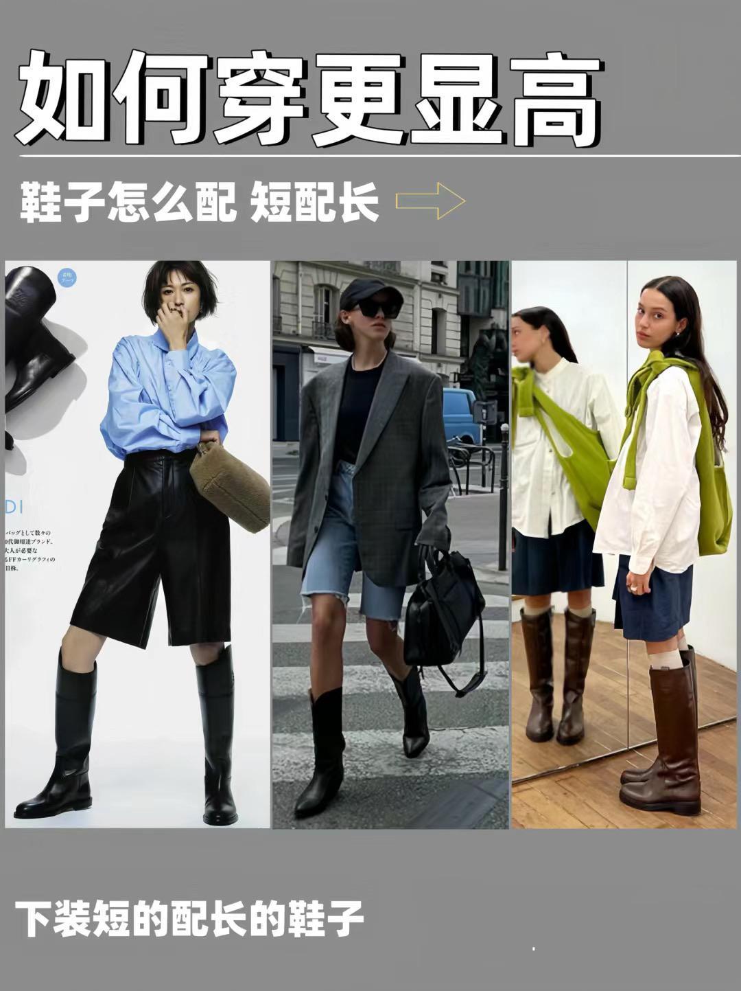 當我們穿着比較短的下裝時,儘量搭配長一點的鞋子。