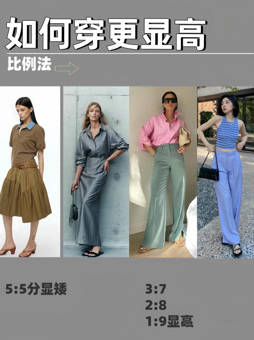 建議選擇三七、二八、一九等比較顯高的比例風格方式。