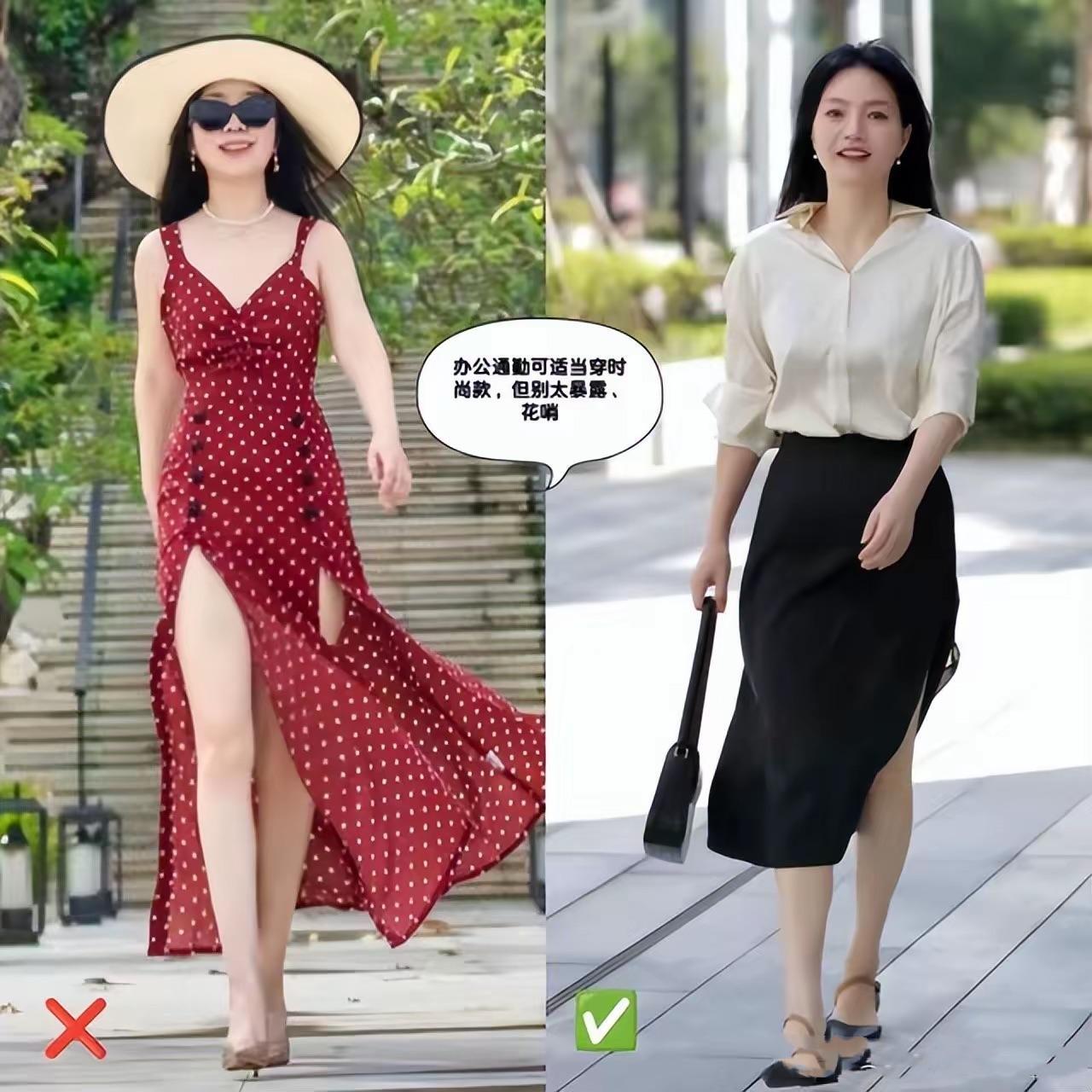 出入正式場合的時候,如果穿着的裙襬長度太短,就很容易顯的浮誇。尤其是超短款的蛋糕裙,有很強的扮嫩嫌疑。