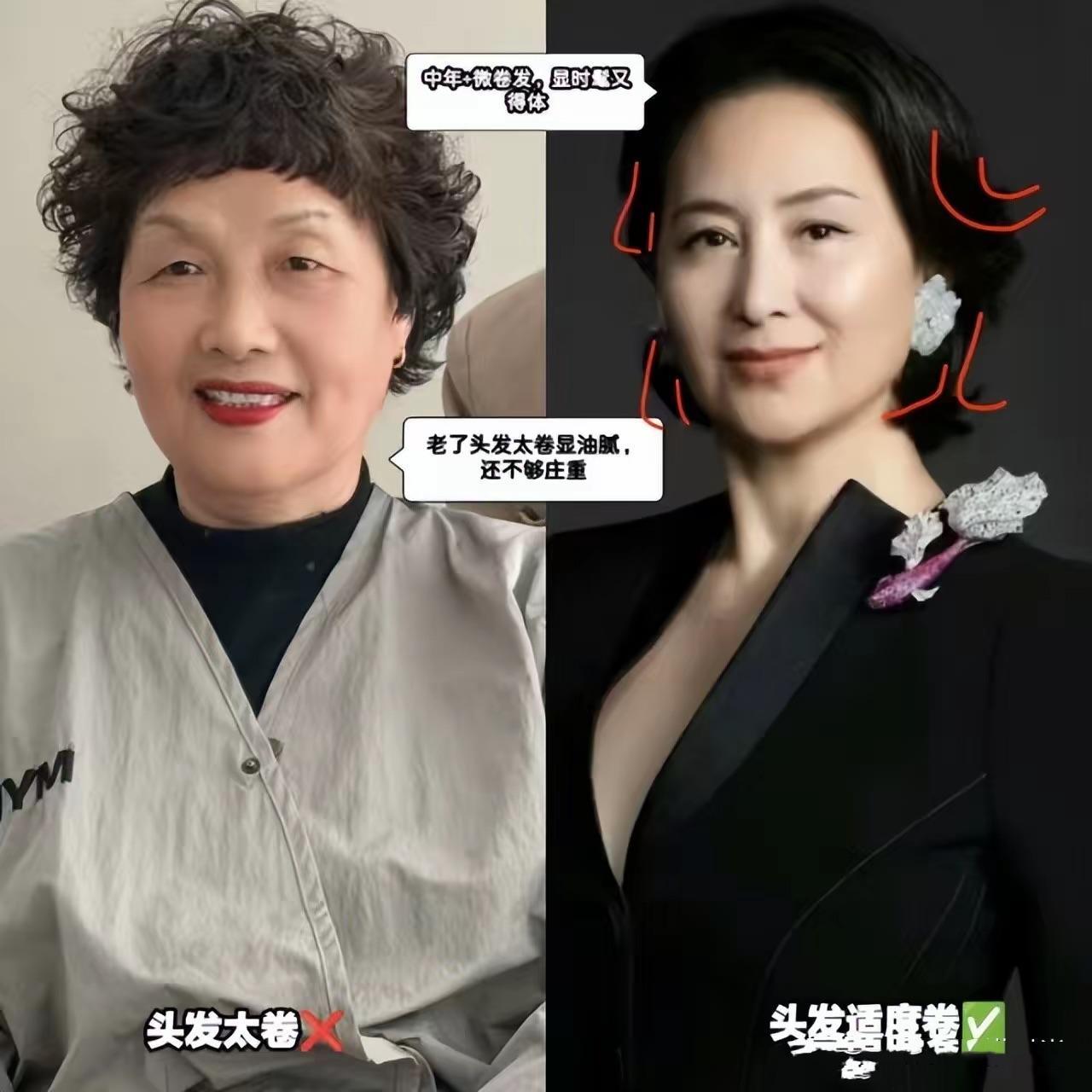 如果頭髮不是很長,還是需要稍微燙卷一點,纔可以更好的修飾自己的臉型。微卷發,也分爲大小卷,年紀越大,越建議大家選擇大卷的捲髮。