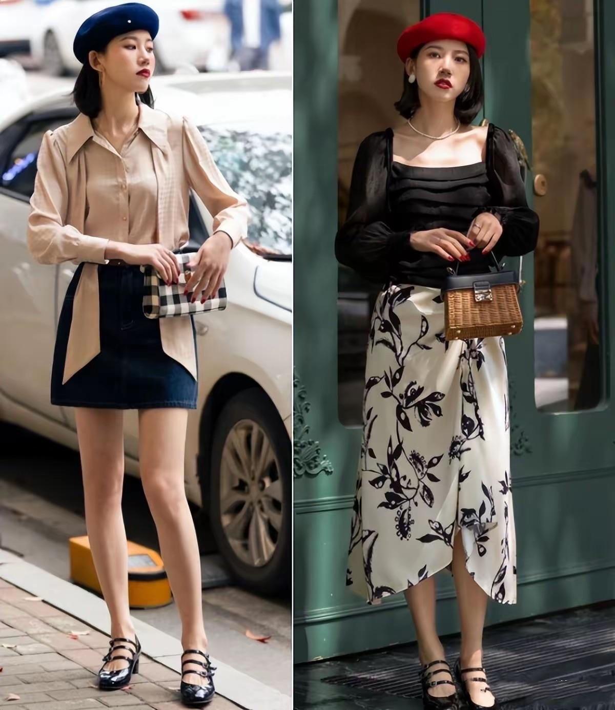 這時候建議大家選擇與裙子順色的鞋子,也就是同色或者鄰近色的鞋子。比如黑色連衣裙,配黑色瑪麗珍單鞋,低跟的設計也是穩重顯高。