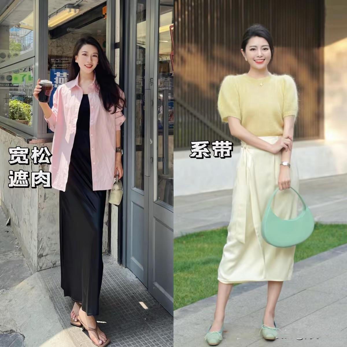 3、裙襬寬鬆的醋酸裙、舒適又遮肉