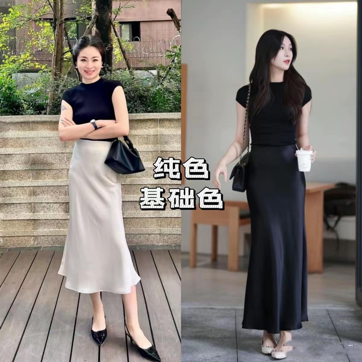人到中年,身材更加豐腴,曲線的圓潤與流暢,更表現出貴氣與性感。這時候修身T恤+醋酸裙的組合,就是更加溫柔體面的。