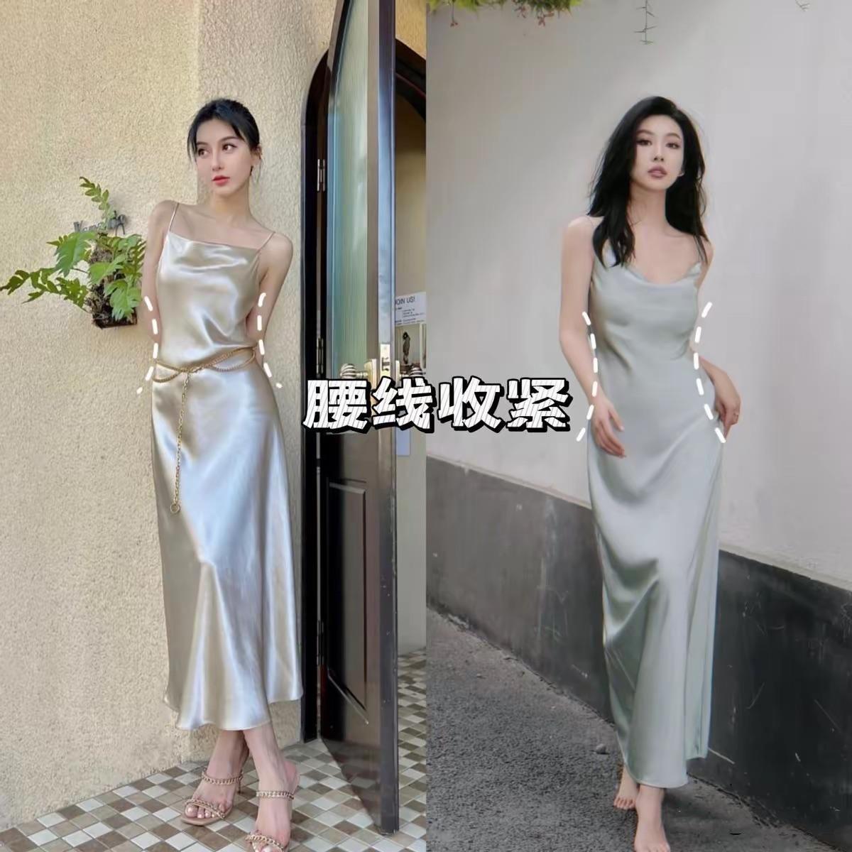 女性魅力的釋放,就是最天然的情懷。像這種吊帶款式的醋酸裙,配合腰身收緊的設計。有一種“掐腰感”的設計,勾勒出女性曲線美、又特別的顯瘦。