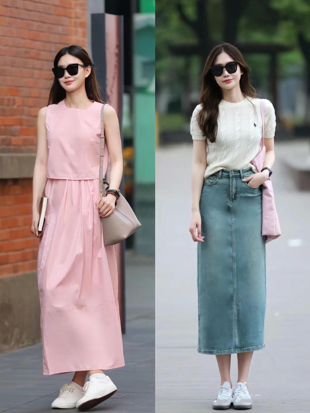 參考自己的身材比例,選擇適合自己的版型。如果腰粗、胯寬、大腿厚重,建議大家多穿A字形的剪裁流暢的牛仔半身裙,配淺色T恤也很溫柔。