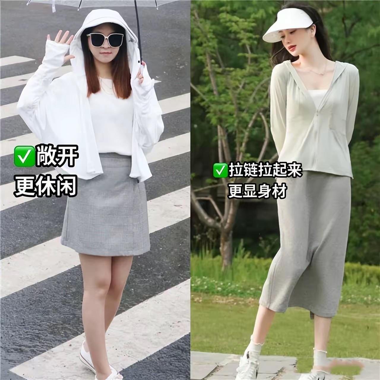 相對而言,冰絲面料的防曬衫,就自帶冰涼觸感,穿起來不會悶熱,也讓我們的穿搭更加舒適。