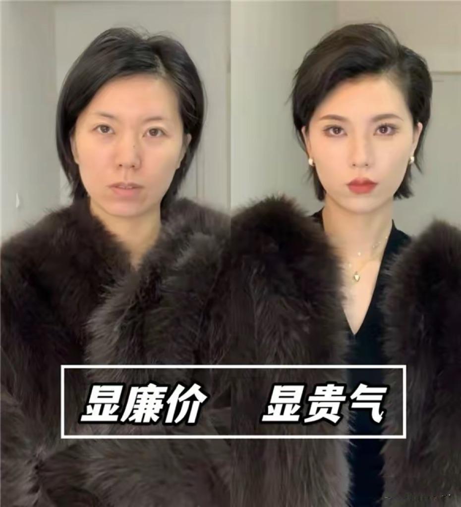 自帶貴氣感的服裝,就不要直接素顏穿着了。你素顏的樣子、撐不起這種衣服的體面。比如皮草、真絲、羊絨、真皮等面料的服裝,都是更加顯貴的。