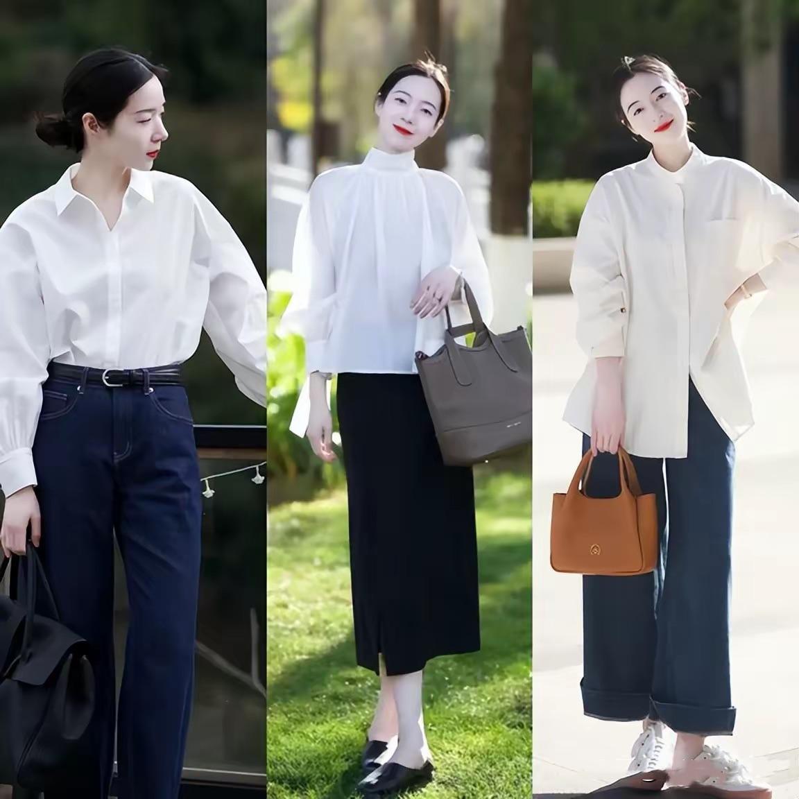 經典的白襯衫,也可以選擇各種不同的款式。除了休閒風的白襯衫、還可以選擇一種套頭設計的白襯衫、以及文藝風白襯衫。