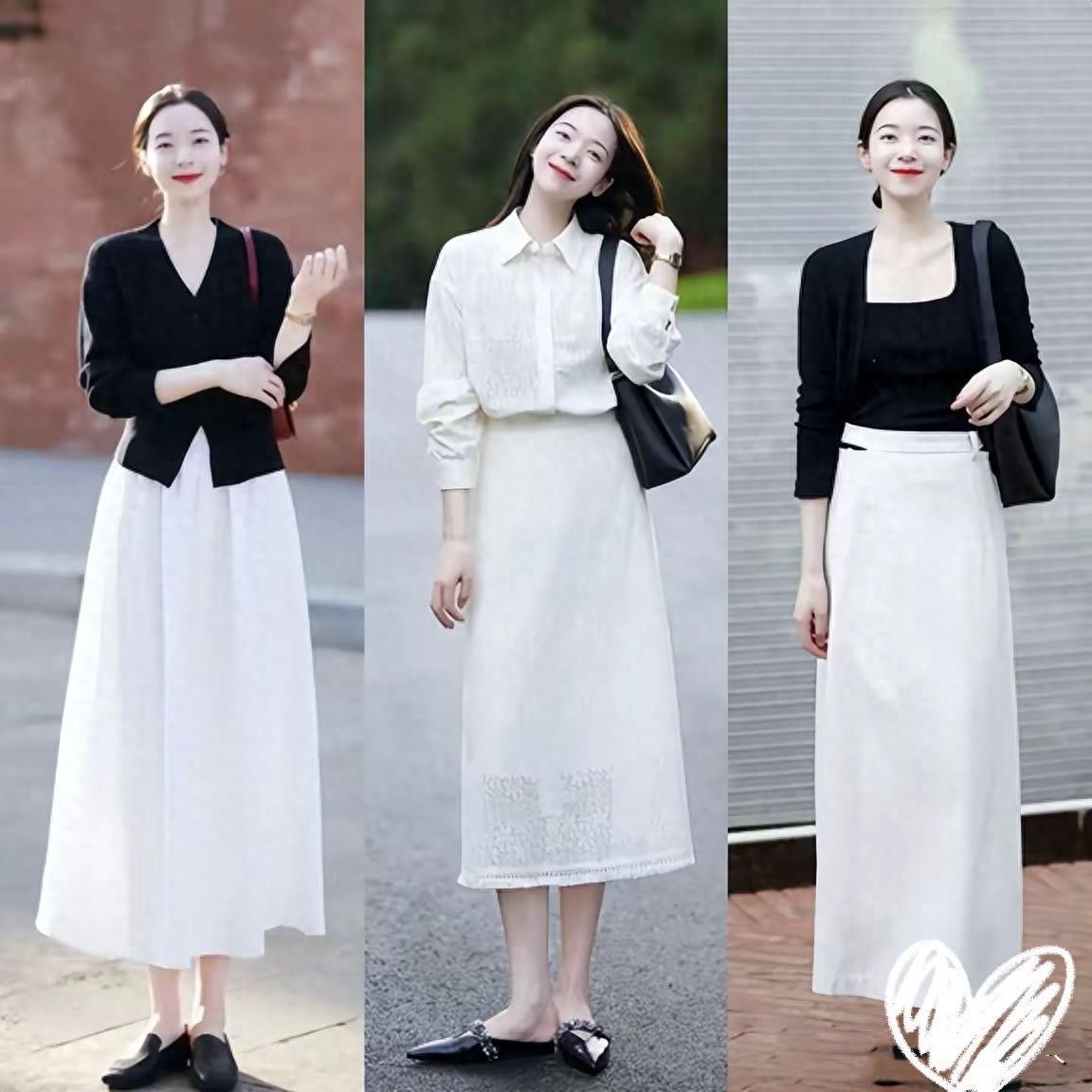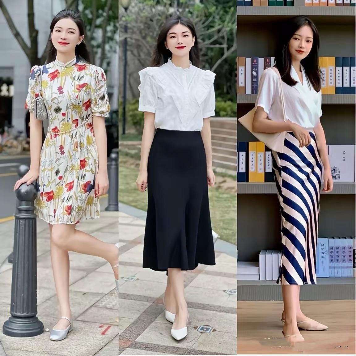 通勤風的穿搭,是內斂的、溫婉的、高級的。襯衫+半身裙+尖頭高跟鞋的組合,就是不會出錯的搭配。尤其是垂順的半身裙,是顯氣質的關鍵。