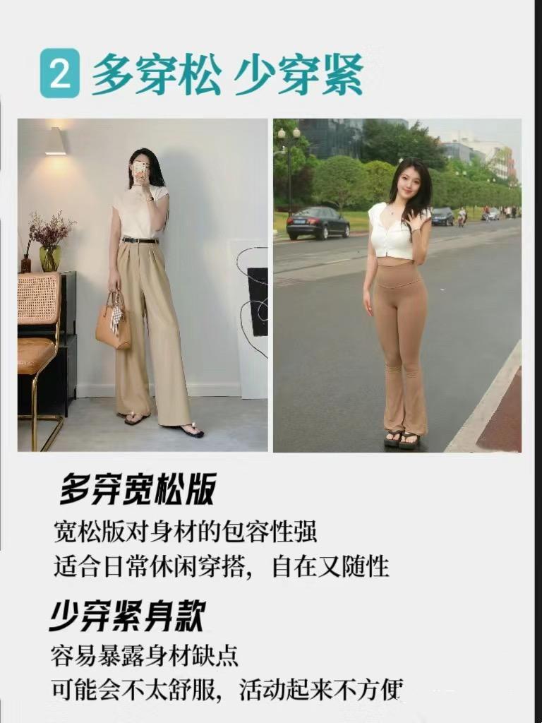 如果沒有魔鬼身材、就一定要學會藏拙。太緊身的衣服,不僅穿起來有一種類感、也特別容易暴露身材的缺陷。