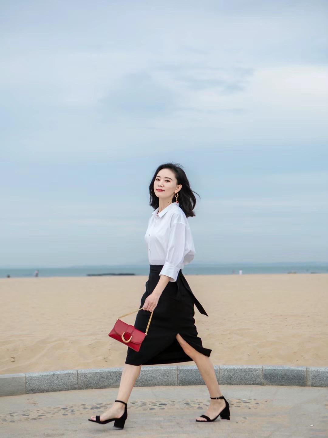 越是簡約的服裝,才越容易穿出高級感。比如基礎款襯衫、搭配高腰的西裝褲,就是簡單大方的,有一種從容之美。