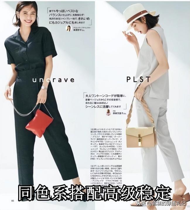 無論是休閒街頭還是正式場合,同色系的穿法都十分適用。一身黑的配色高級有氣場,可以讓我們看起來更加苗條。而一身淺色的穿搭則可以增加減齡感,不僅讓造型更加富有活力,同時還能襯托出膚色的光澤感。總之,不管選擇什麼色彩,我們都要在不失優雅的前提下展現出自己獨特的品味與個性。