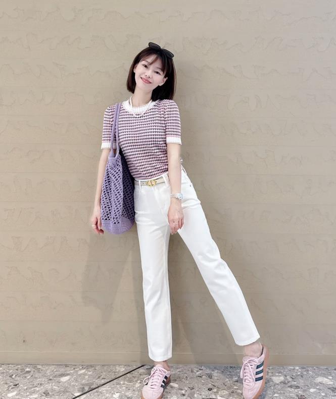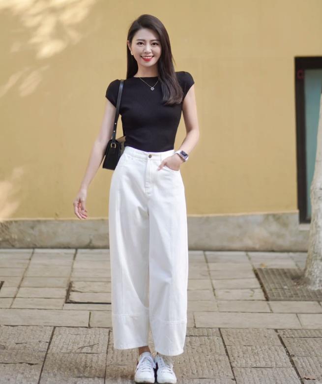 喜歡穿白褲子的姐妹,一定要選對合適自己身材的版型纔行,腿型比例好的,入手修身一點也不怕。九分的長度,小個子女生也能輕鬆駕馭了,很百搭又好穿。