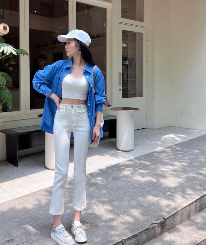 牛仔褲這種單品,我真的可以穿很多年,因爲這種材質的褲子,都是很舒服的,關鍵不管是經典牛仔藍,還是黑色和白色,都超級百搭的。在夏天的穿搭裏,褲子和上衣的顏色,都可以選擇淺色一些,特別是白色,還有就是彩色,可以提亮整個造型,也襯膚色。