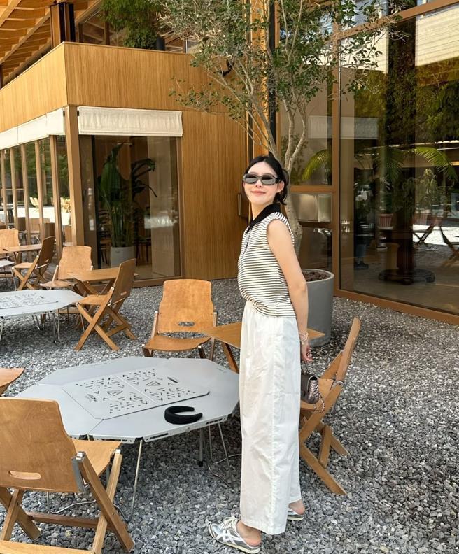 我宣佈,這一套就是專屬於夏天的,條紋polo背心+白色九分褲,一整個穿搭配色主打的就是乾淨舒適,寬鬆的褲子版型,不僅藏肉顯瘦,還能帶給你舒適和隨性,完全不會因爲白色而顯胖。