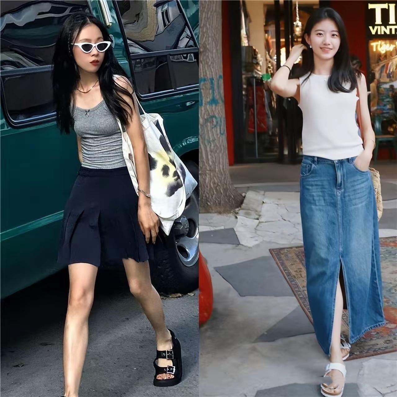想要熱辣中帶一點張揚的風格,自然可以嘗試這種吊帶背心+半身裙的穿搭look了。修身一點的吊帶背心,更加適合紙片身材。