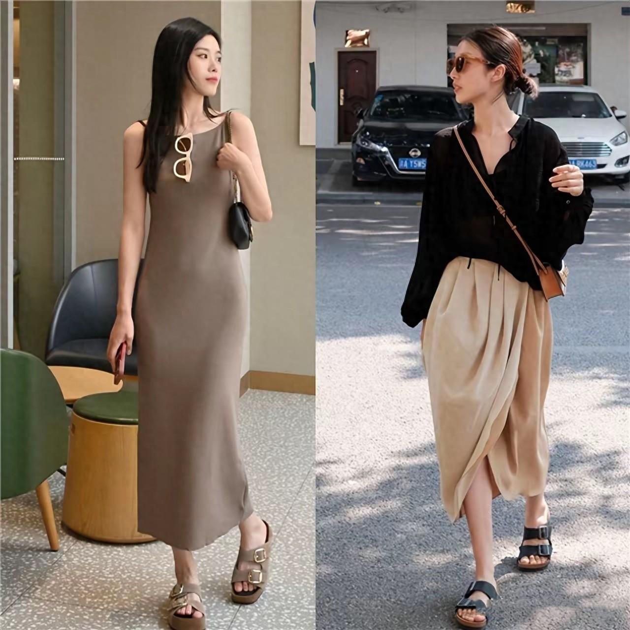 如果身材有一點豐腴,可以配深色吊帶背心。吊帶背心搭配牛仔半身裙,與勃肯涼鞋的組合也格外清爽。勃肯涼鞋選擇與服裝中某一種顏色臨近的色彩,才方顯高級。